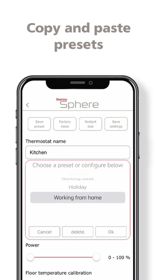 Once you've set up one thermostat, copy and paste all of your settings to another thermostat with easy presets.