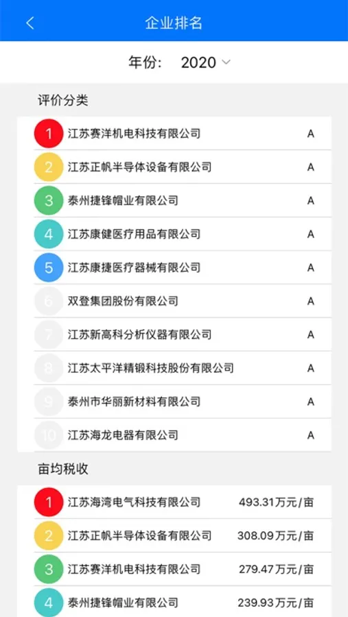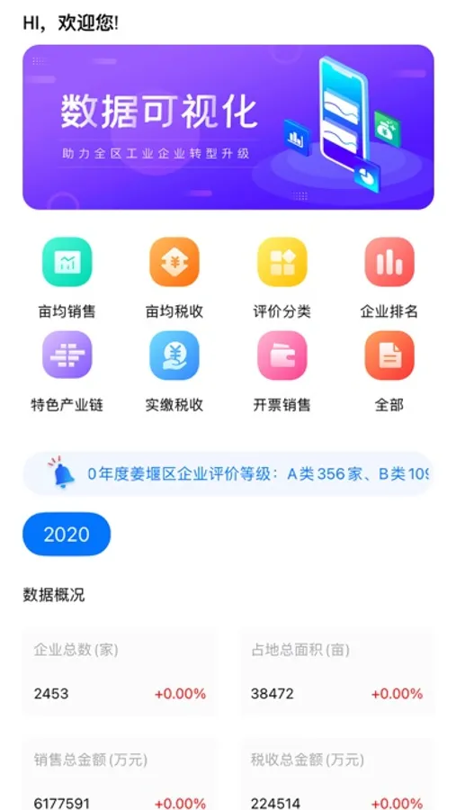 亩均销售,亩均税收,评价分类,特色产业链占比,实缴税收,开票销售,数据采集等功能。