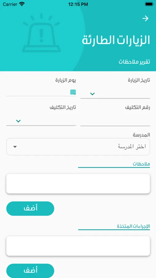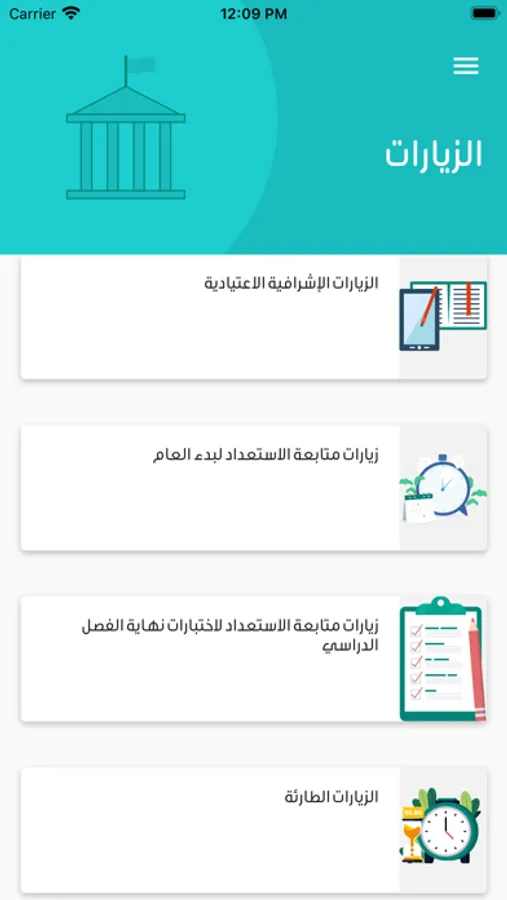يقوم التطبيق بإنشاء زيارات إشرافية للمدارس سواء كانت الزيارات بخطة مسبقة أو لمتابعة الاستعداد لبدأ العام الدراسي أو نهاية الفصل الدراسي أو الزيارات الطارئة