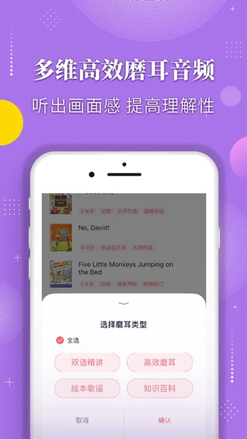 多维度挖掘一本绘本的全部启蒙价值,借助听的方式,丰富的环境音效让孩子听出画面感,在画面感中进行语言学习,提高输入的可理解性,从而增加输出的可能性,告别无效的听力输入。