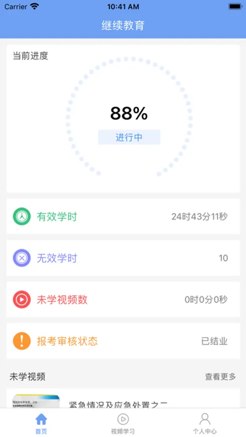 本产品是一款通过观看视频来进行学习道路知识从而计算学时的app
