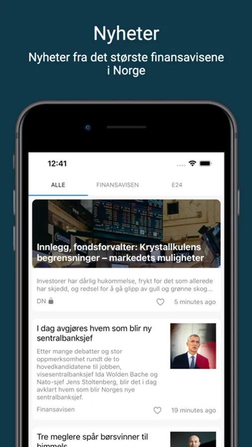 Nyheter: Nyhetskilder som er lagt til er Dagens næringsliv, Finansavisen og E24.