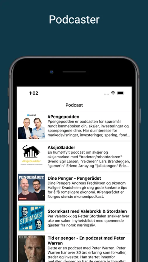 Økonomi-podcaster: AksjeGuru samler et utvalg av de beste økonomi-podcastene i en og samme app. Lær fra eksperter og få dypere innsikt i aksjemarkedet, kryptovaluta og økonomiske trender. Podcaster som er lagt til er Pengepodden, AksjeSladder, Dine Penger, Stormkast med valebrokk & Stordalen, Tid er penger - En podcast med Peter Warren