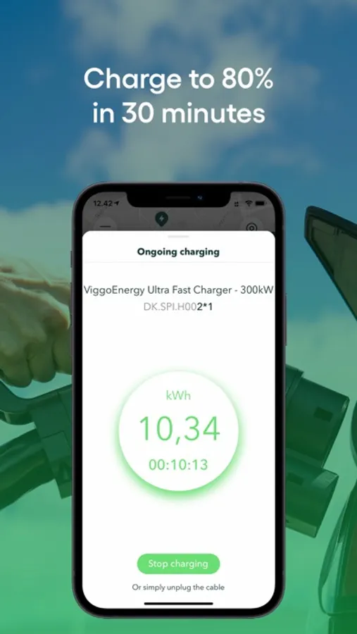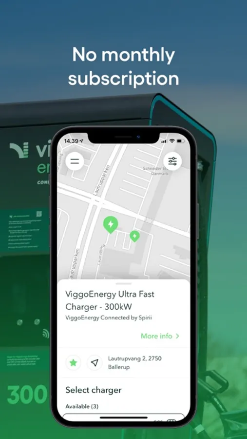Use the ViggoEnergy app for ultra fast charging at ViggoEnergy 300 kW-ultra fast chargers.