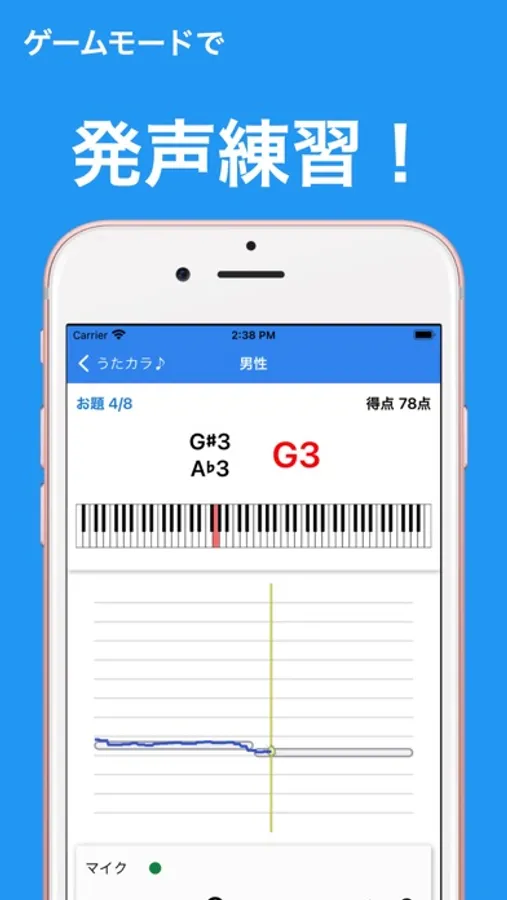 出題される音程に合わせて発声しよう!低音から高音まであらゆる音域をカバー!