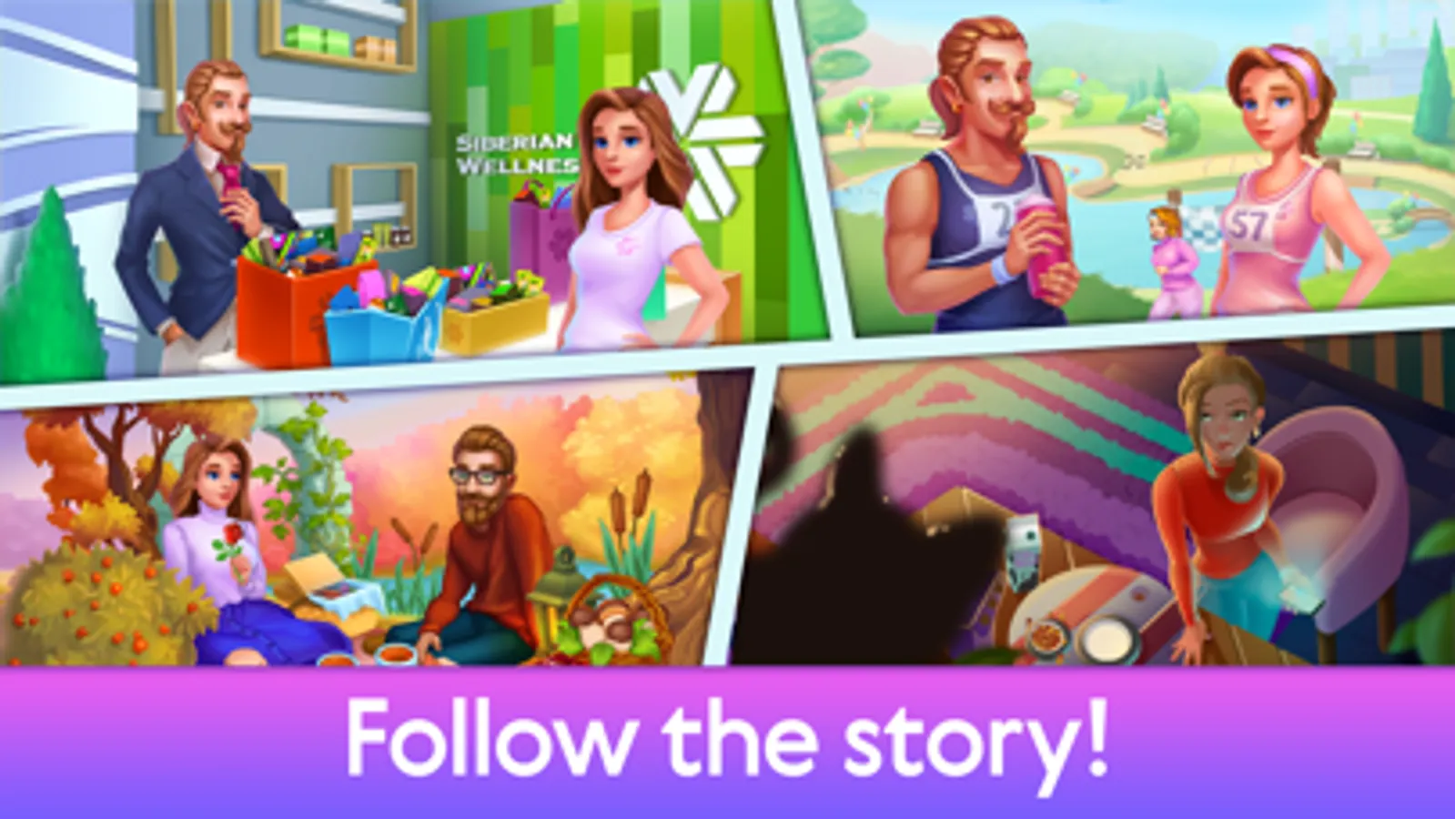 Solve three in a row puzzles, save the estate from demolition, meet interesting characters and help them change their lives. Unravel insidious conspiracies and travel around the world. Become a cool designer and consultant, assemble a dream team and build a global business. Help to build romantic relationships with a handsome coffee shop owner and get involved in it yourself.
