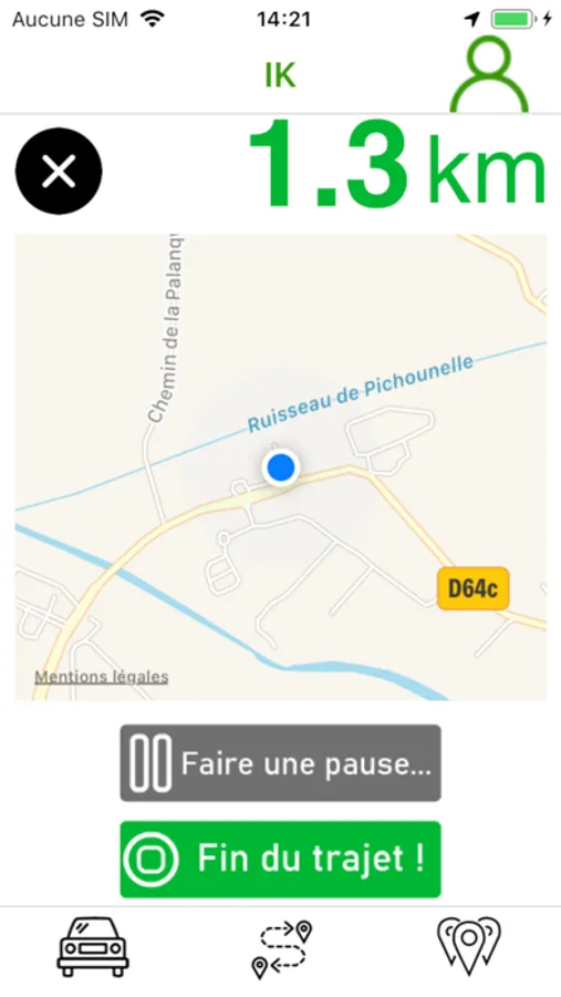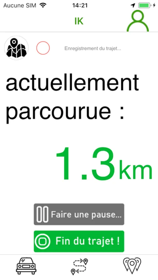 Le parcours en enregistré par le GPS en tâche de fond, IK fonctionne en parallèle de Waze et autres mappers.