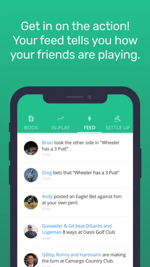 * Easily get more action! On the course on your own games, or from your Cubicle on other's games! Pick the winner or send out a prop bet.