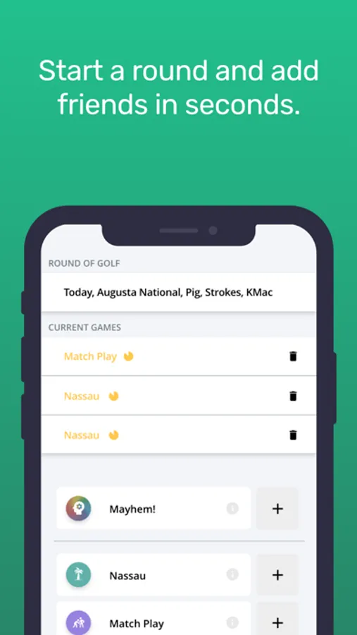 * Quickly set up and score your golf rounds.. and as many games as you like!