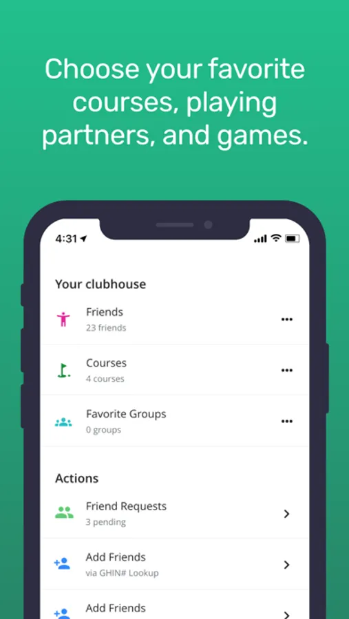 * Integrate with GHIN digital profile to see who is legit and who is not. Players with "Unofficial" caps show on their profiles.