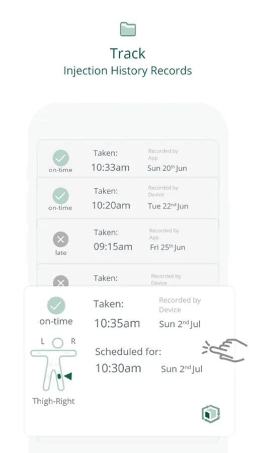 The power of the HealthBeacon Injection Care Management System comes for our integrated 'tech + touch' approach that focuses on tracking & improving your adherence score. The system seamlessly combines our sophisticated technology and data with first in class support from our Care Team to make sure you get the right support at the right time.