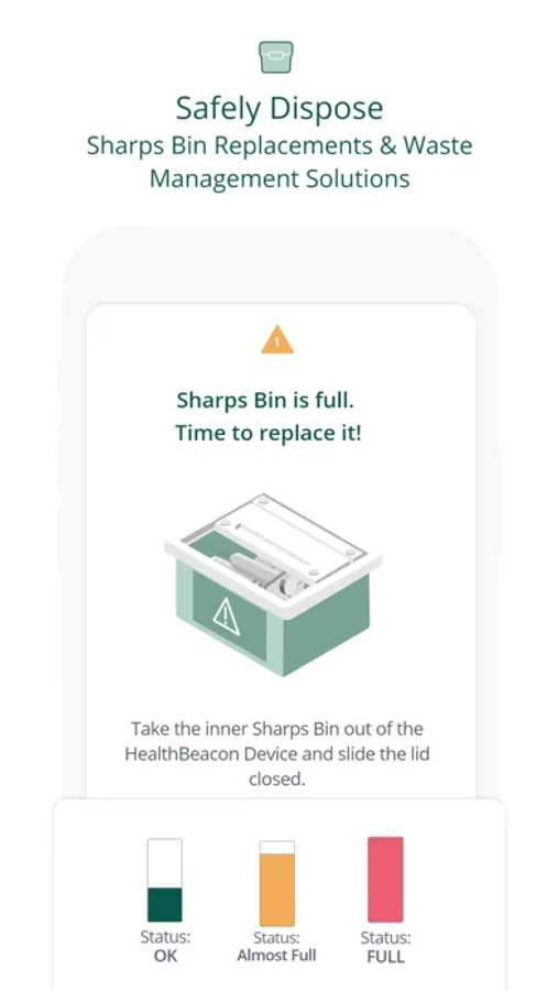 • Safe and discreet storage of medical waste in the HealthBeacon Smart Sharps Bin