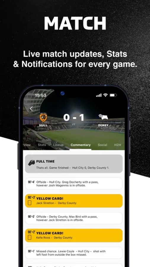 Matchday build-up, featuring head-to-head stats, match predictions and team news. Live match alerts, line-ups, commentary, in-depth stats, player ratings, top social tweets, and fan reactions.