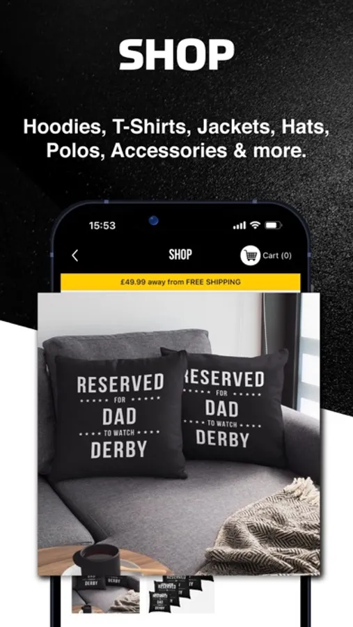 ComeOnDerby branded apparel and bespoke designs for Derby County fan clothing, phone cases and posters.