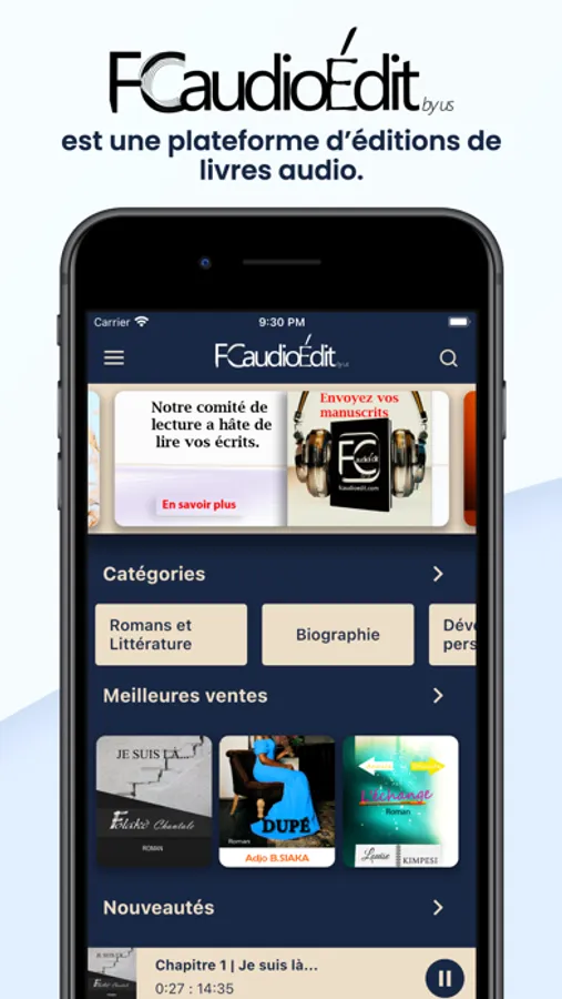 FCaudioÉdit est une plateforme d’éditions de livres audio. Notre application gratuite permet l’achat de livres audio partout dans le monde.