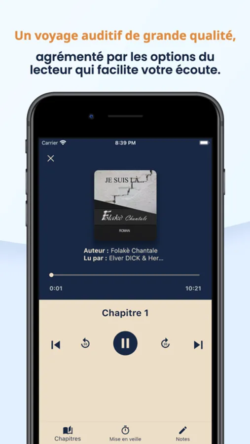 • Sélection des chapitres. Aller à votre guise d’un chapitre à l’autre sans vous perdre dans la navigation ni dans l’écoute.