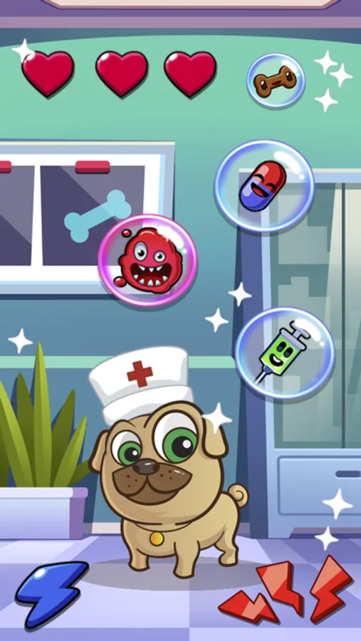 Today, in the game, puppy pal came to your reception. Examine the animal and treat it. Wash the dog, make bandages and injections. If you perform the procedures correctly, the dog will heal and bark happily.