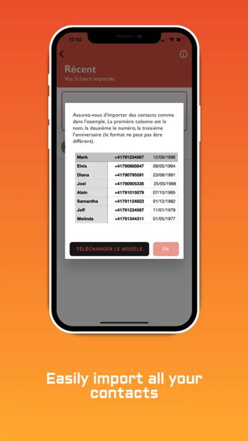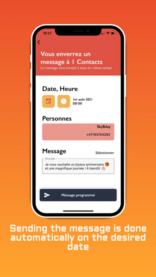 Our application gives you the ability to import contacts, synchronize birthdays from your calendar, pre-record personalized messages that will be sent through dynamic and intuitive scheduling on the day and time of your choice automatically.