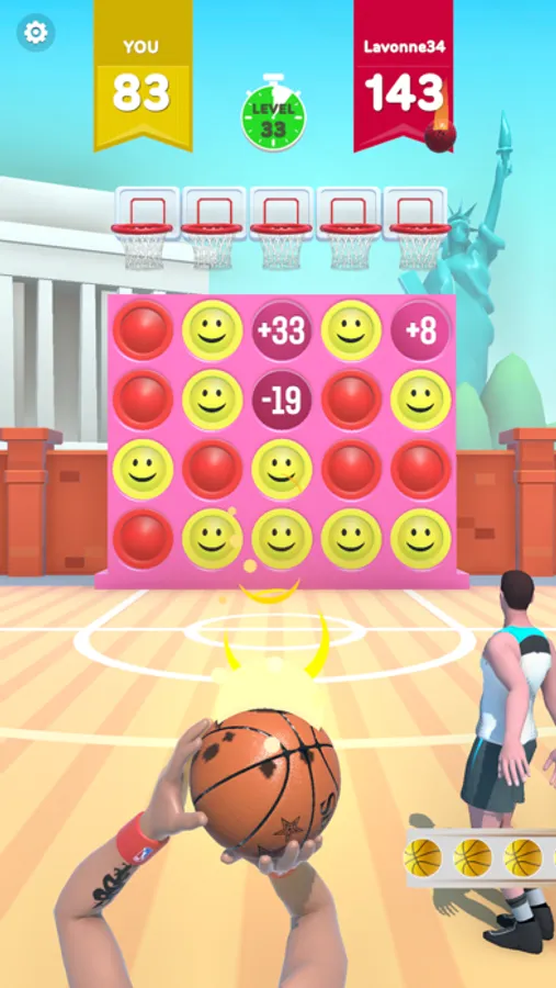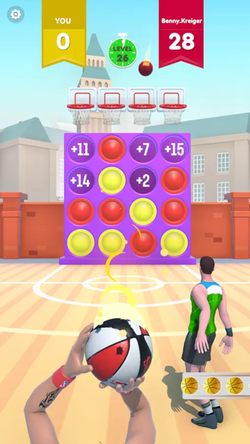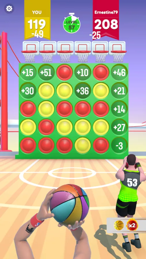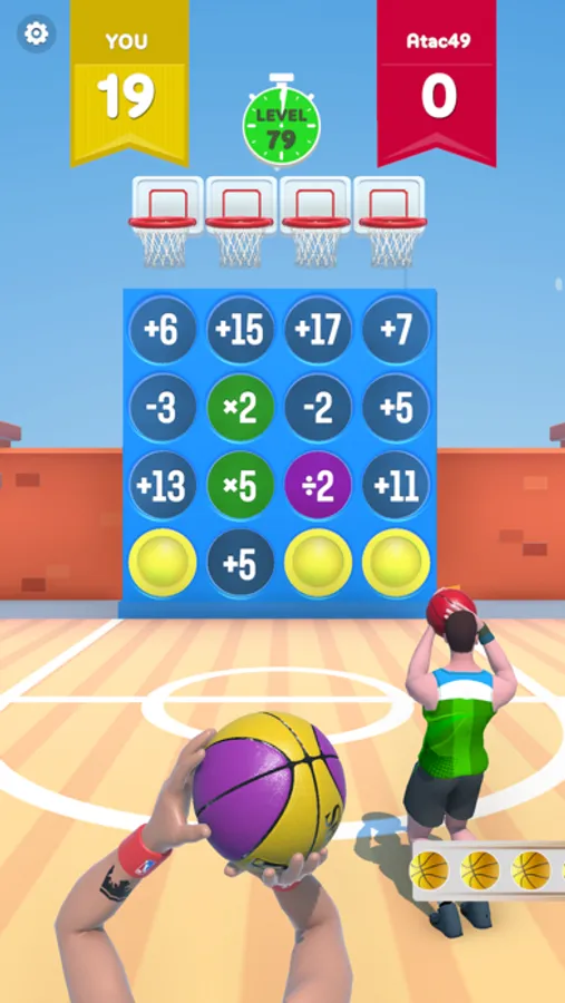 There are some numbers on the board, your goal is to eliminate your opponent by getting the highest score. You should pay attention to the minus and plus numbers. In some places, there may be objects that will prevent you from shooting baskets. Do your math well and try to reach the top of the list of thousands of people. You can customize your character by buying new balls and accessories with the dollars you earn.