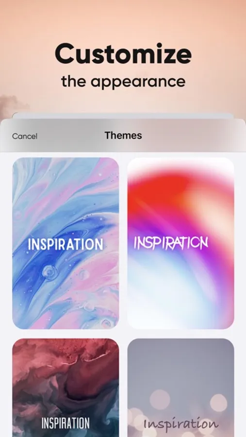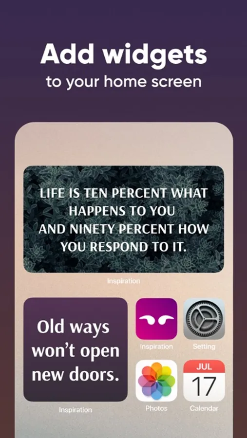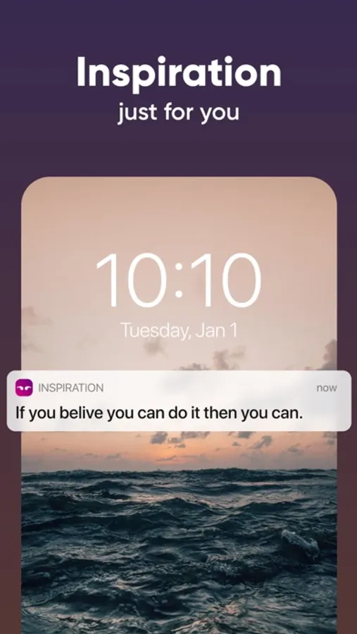 Inspiration delivers a message of the day to bring you positivity, which you can easily share with your friends, post to Instagram, or set as your wallpaper to inspire you throughout the day.