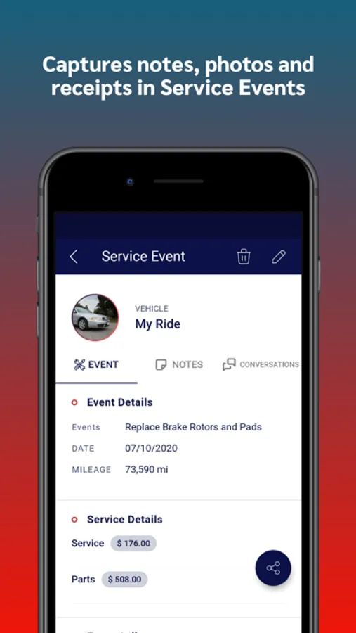 • Service technicians can attach estimates for upcoming service events and message you with options and recommendations