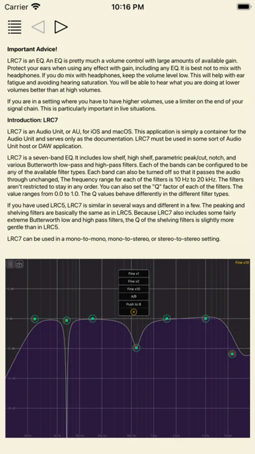 LRC7 is an Audio Unit, or AU, for iOS and macOS. This application is simply a container for the Audio Unit and serves only as the documentation. LRC7 must be used in some sort of Audio Unit host or DAW application.