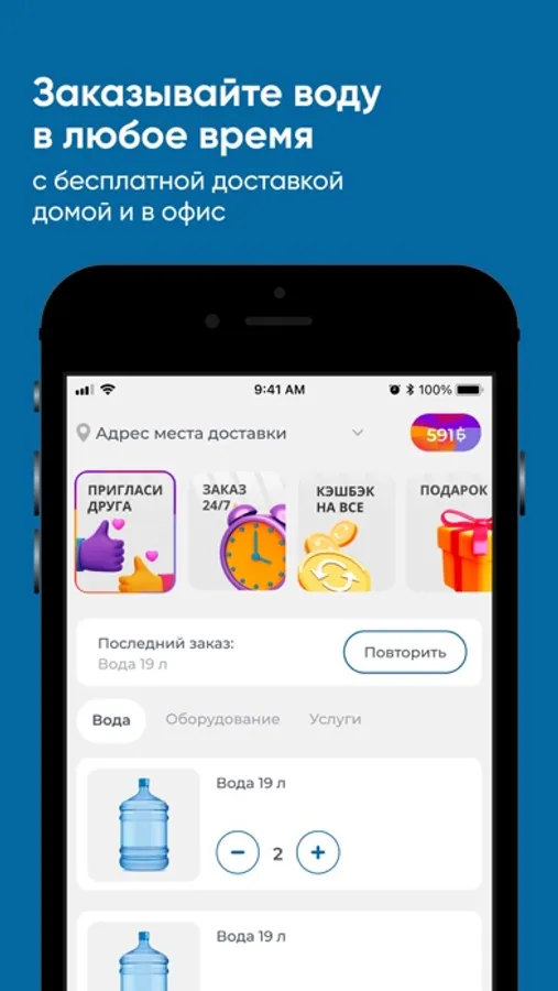 Скачайте приложение «АКВАДОМ Азов» на свой смартфон и делайте заказ воды 24/7. Вы сможете повторять заказ нажатием одной кнопки, видеть всю историю покупок и быть в курсе всех акций компании.