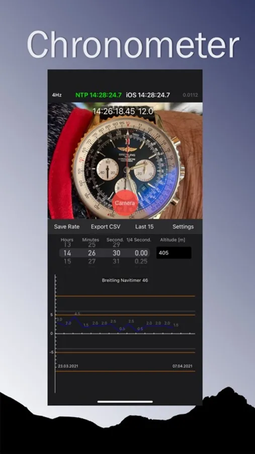 Before you start set your clock to atomic time. Do not set the clock during the recording process! The Chronometer APP requires an internet connection to get the accurate NTP time.