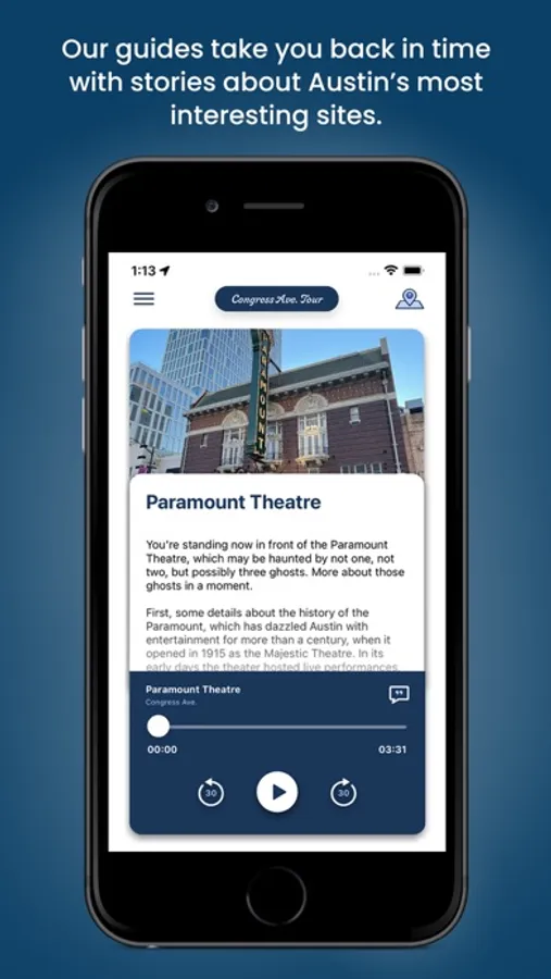 You can choose to simply follow the audio directions without having to look at your phone, or get a deeper dive into each location with historic photos and additional stories within the app.