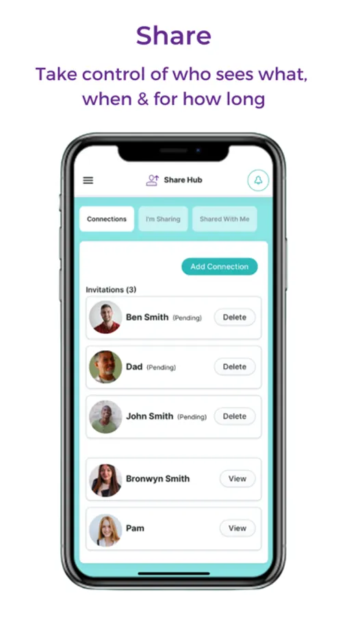 - Create trusted connections & share individual records easily, knowing it's only accessible by that person