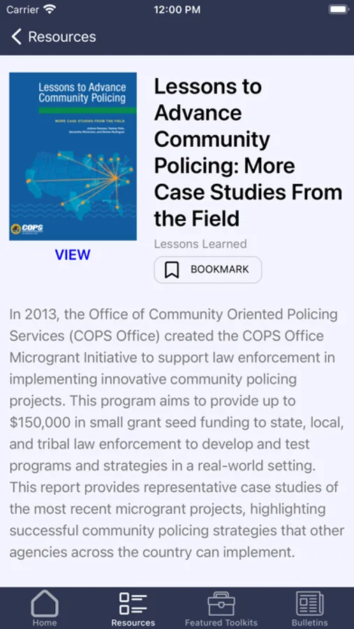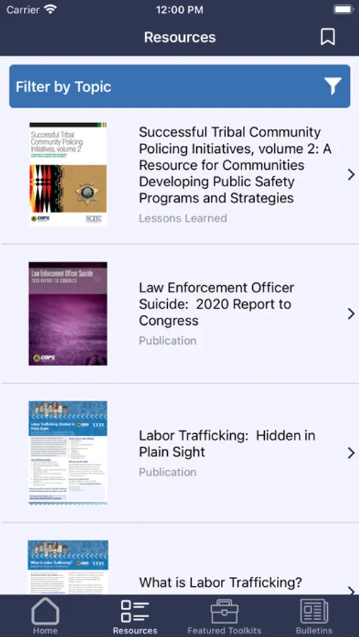 This is the official application for the National Public Safety Partnership Clearinghouse. The Clearinghouse is a public online tool that serves as a one-stop shop for violence reduction and public safety-related resources from the U.S. Department of Justice program components and other federal entities. The Clearinghouse application functions as an online catalog for users to browse, search, and bookmark resources, with the ability to save and view later.