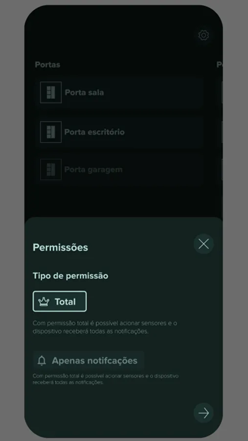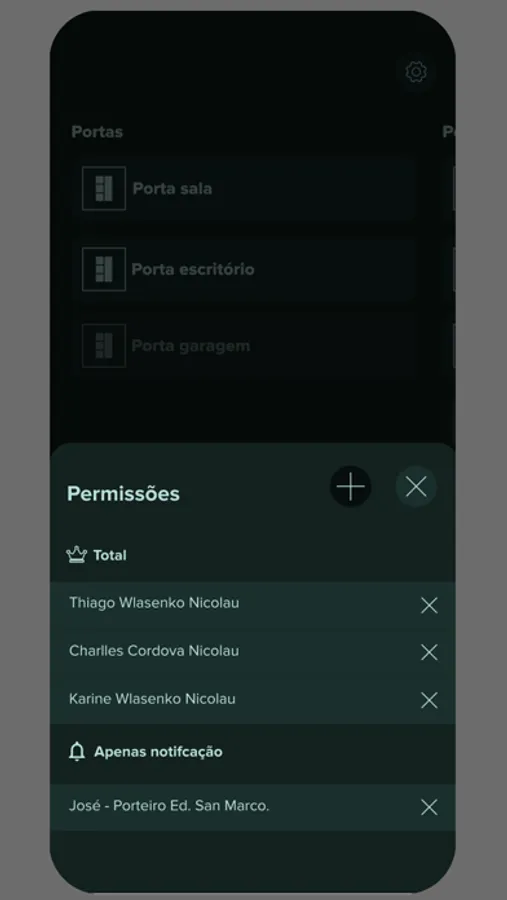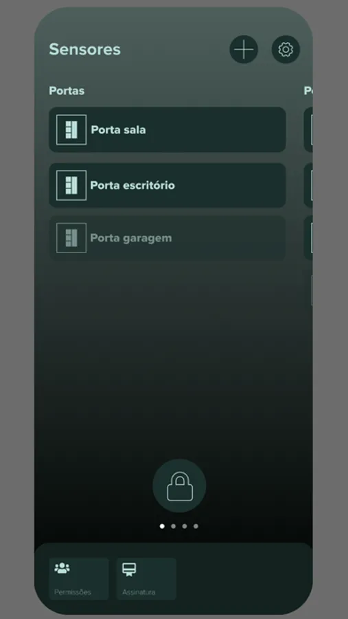 Na tela principal há funcionalidades para o monitoramento, como adicionar, editar, remover, armar e desarmar os sensores do sistema. Vários usuários(as) poderão ser adicionados para a mesma residência, com controle total ou parcial.