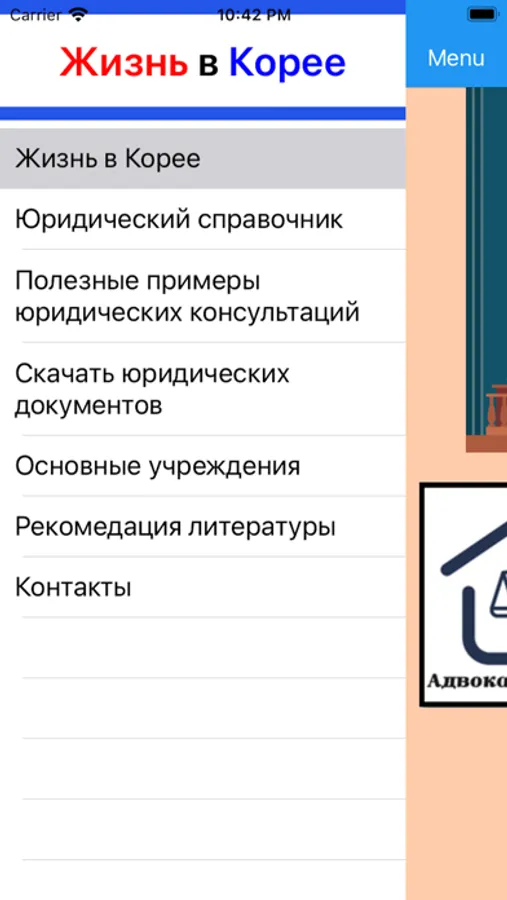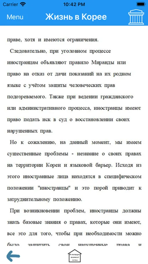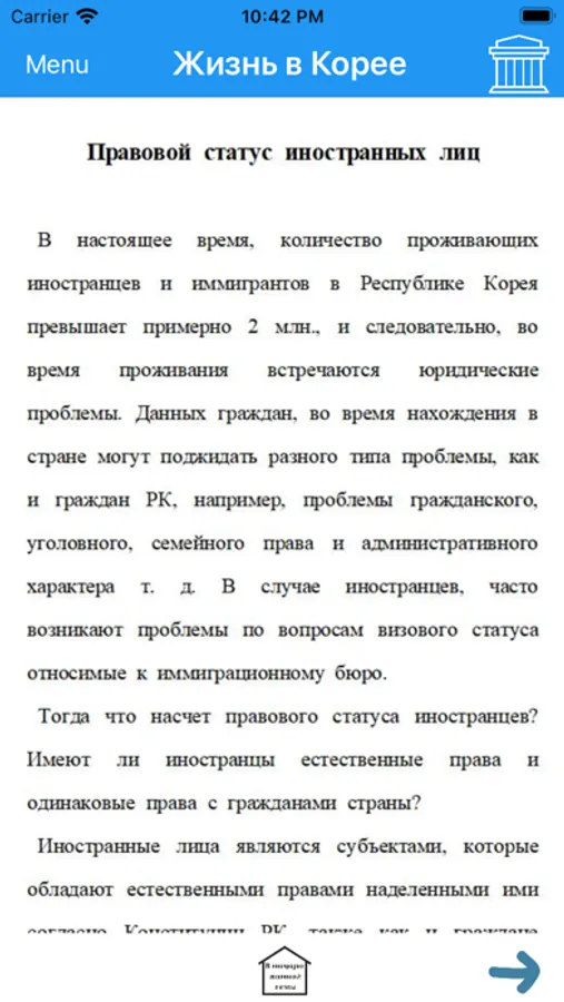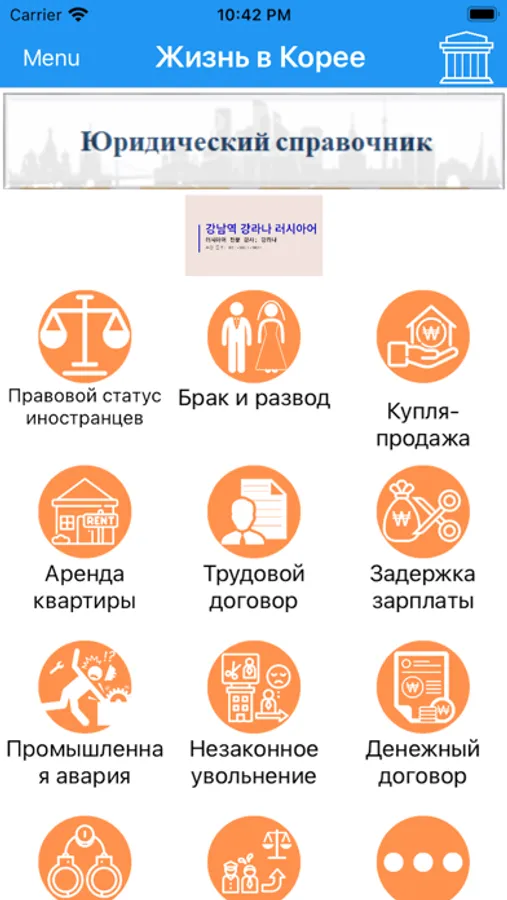 This app provides legal information and useful examples of legal advice for Russian speaking citizens living in Korea. With the help of the application it is possible to easily search for answers to current legal questions.