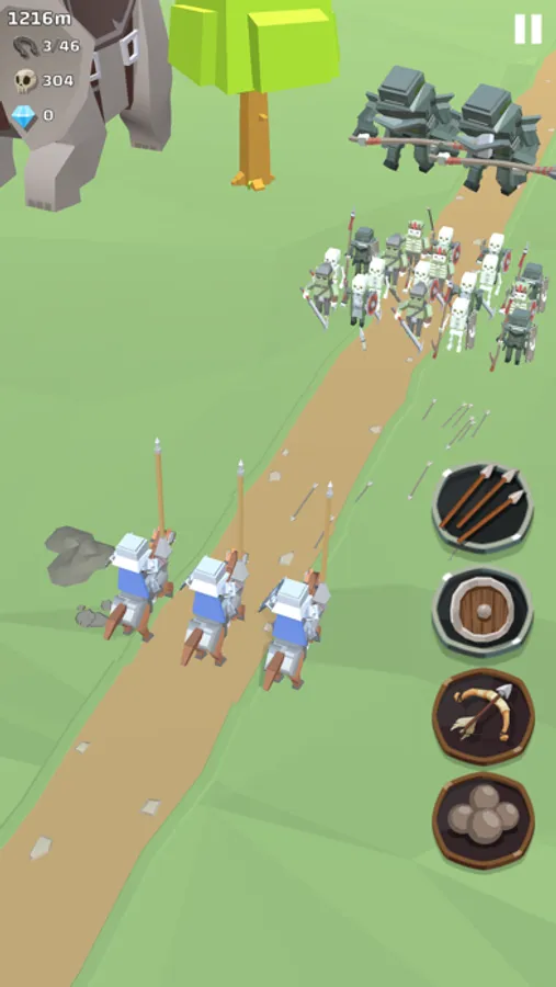 Ride for Ruin is an endless-runner with RPG progression. Charge through your enemies with cavalry to get as far as possible. Dodge trolls, elephants and arrows to ride through the smaller enemies. Buy more riders, unlock heroes and upgrade them all. Upgrade the Archery Range and Siege Workshop to gain access to powerful abilities.