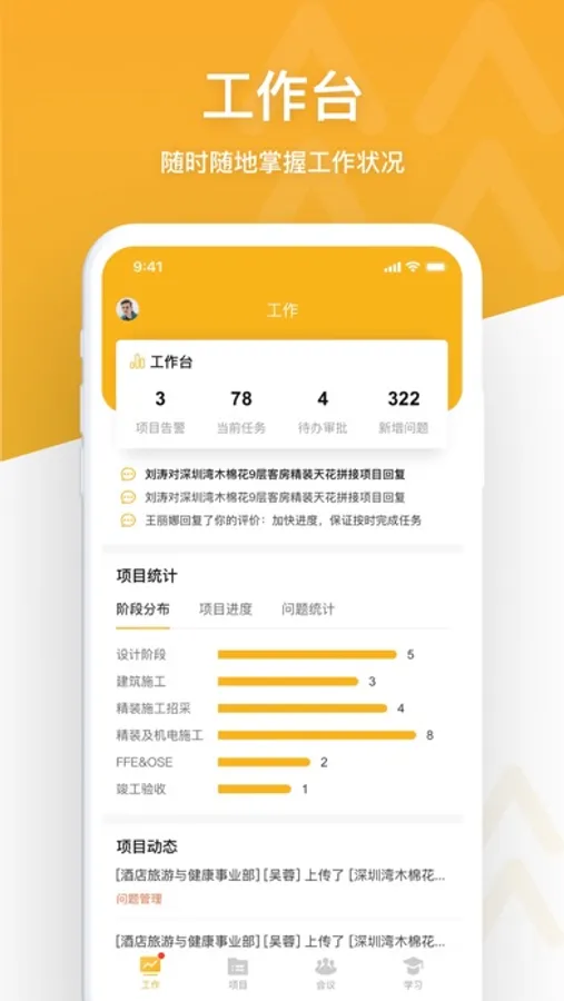 支持查看项目计划、设计成果等信息