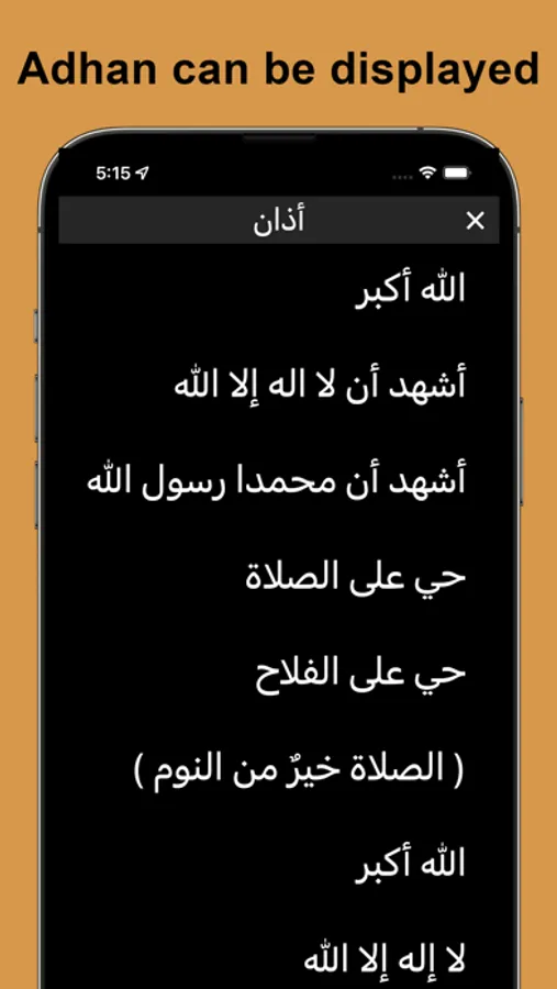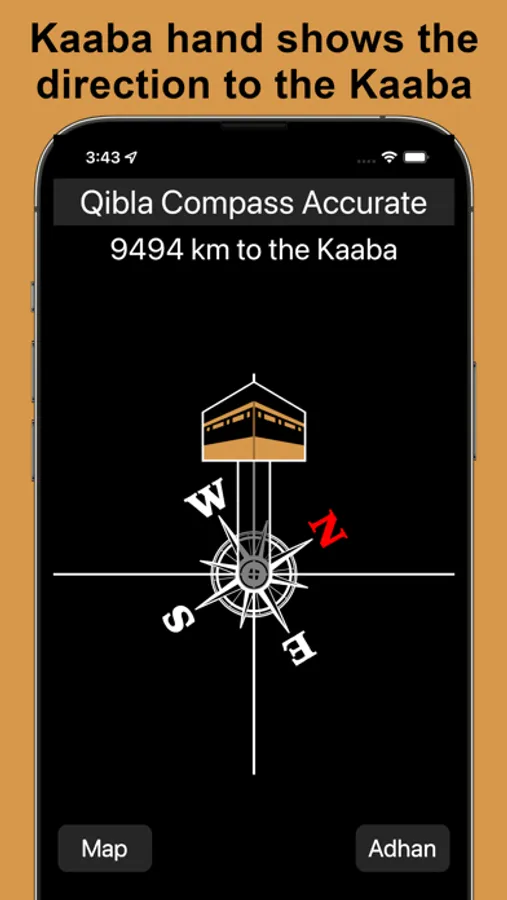 2) Place the device horizontally with the screen facing up. Kaaba hand in the screen shows the direction to the Kaaba.