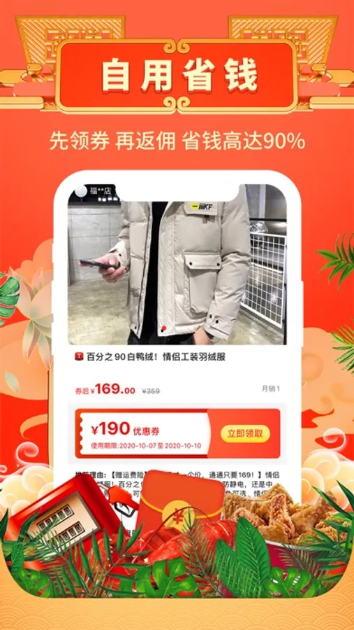 千万用户的信赖之选!一天省下好几十,一年剩下好几千!一部手机轻松赚,海量无门槛优惠券,领优惠券再返利,网购省钱达人必备APP! 省的多赚的多,别人网购吃土,自己网购省赚。这个省赚利器你值得拥有,网购省钱达人不容错过!
