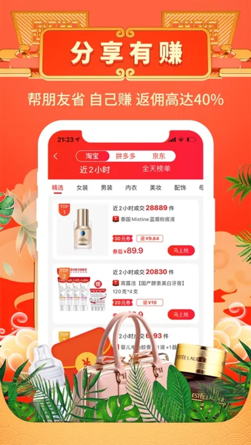 拉新就送5元红包,分享商品还赚佣金,最高返利90% 。