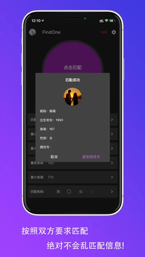 *不被匹配:找到心仪的人后,将自己设置为不可以被匹配到,其他人就无法匹配到你了!