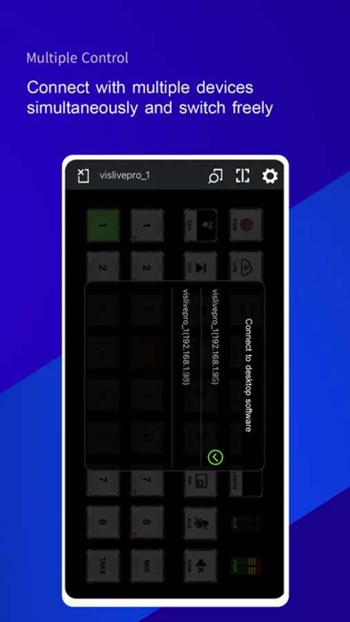 The VisKeyboard is an auxiliary application that runs on mobiles and Pads. With the APP, you can perfectly control the VideoStar softwares, such as VisLive, VisEdit and so on.