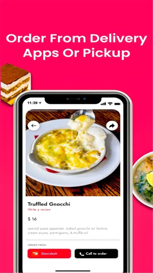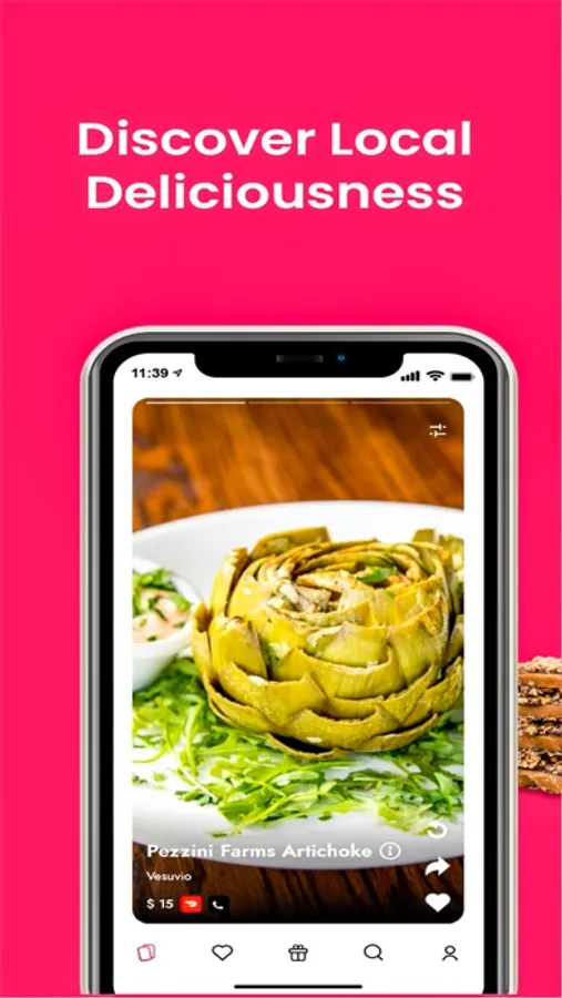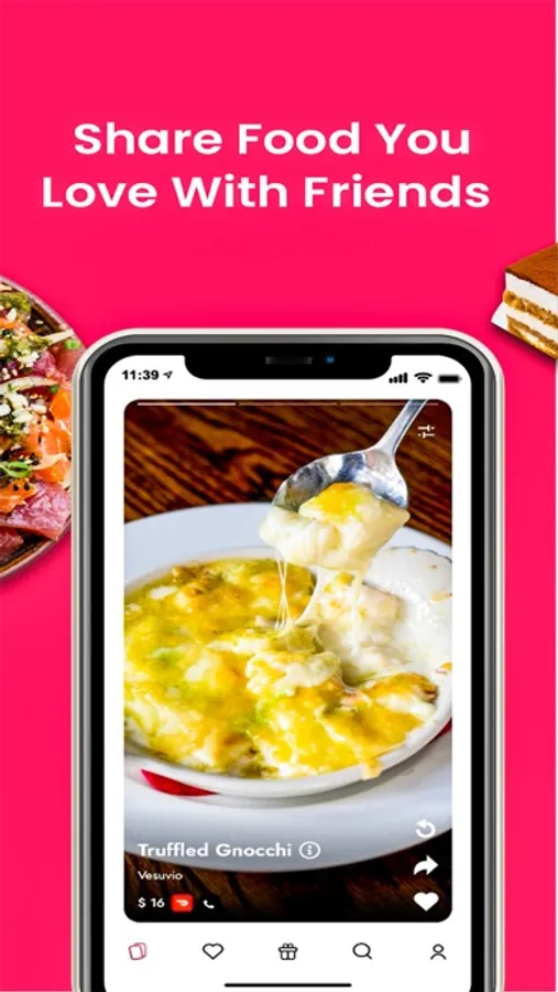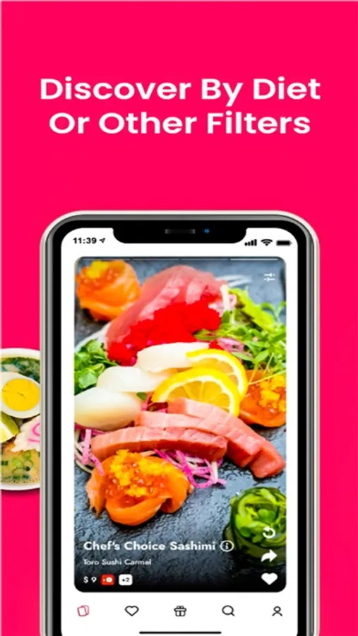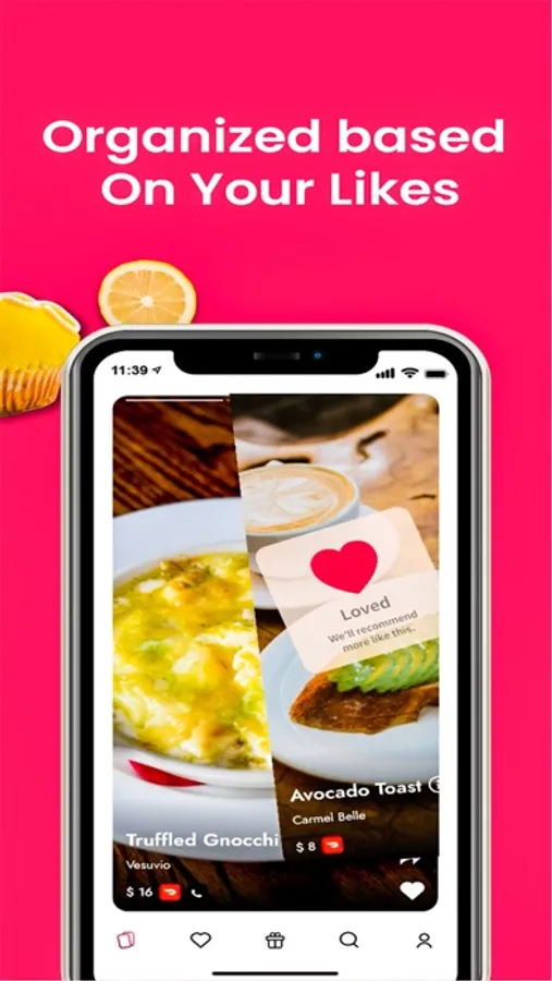 FoodDiscovery App features an innovative algorithm that organizes dishes made by loca Restaurants based on users previous interactions with the app. Users are presented with dishes in form of a stack of cards where each card represents a dish. Users interact with each card by liking it by swiping right or skipping it by swiping left. Every time a user interacts with a card our system learns what the user prefers on that day and presents new cards accordingly. Users can share dishes they discover with friends as well as add reviews to dishes.