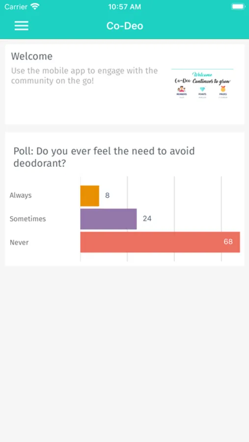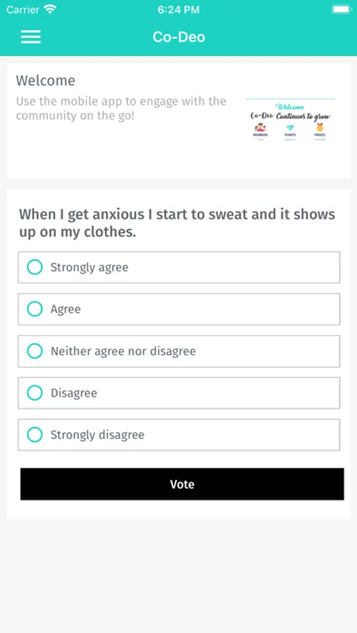 You will have opportunities to participate in new exercises every week including topics/forums, online surveys and quick polls. This app will allow you to access the community on your mobile phone or tablet. You will earn points as a result of your participation in these activities, which can be redeemed for various gift cards.