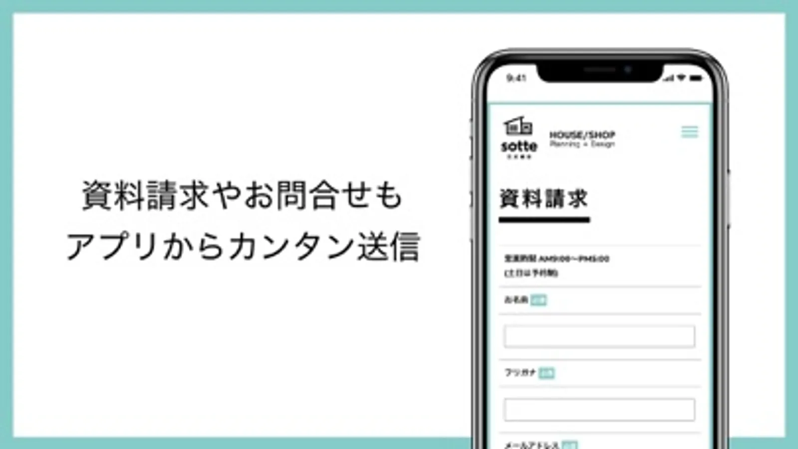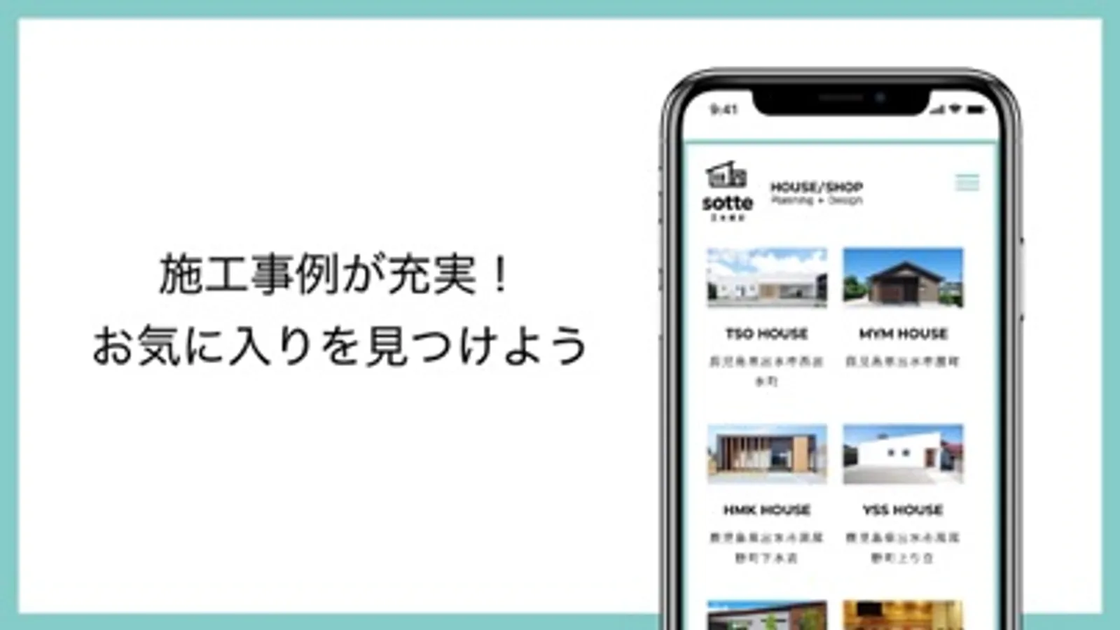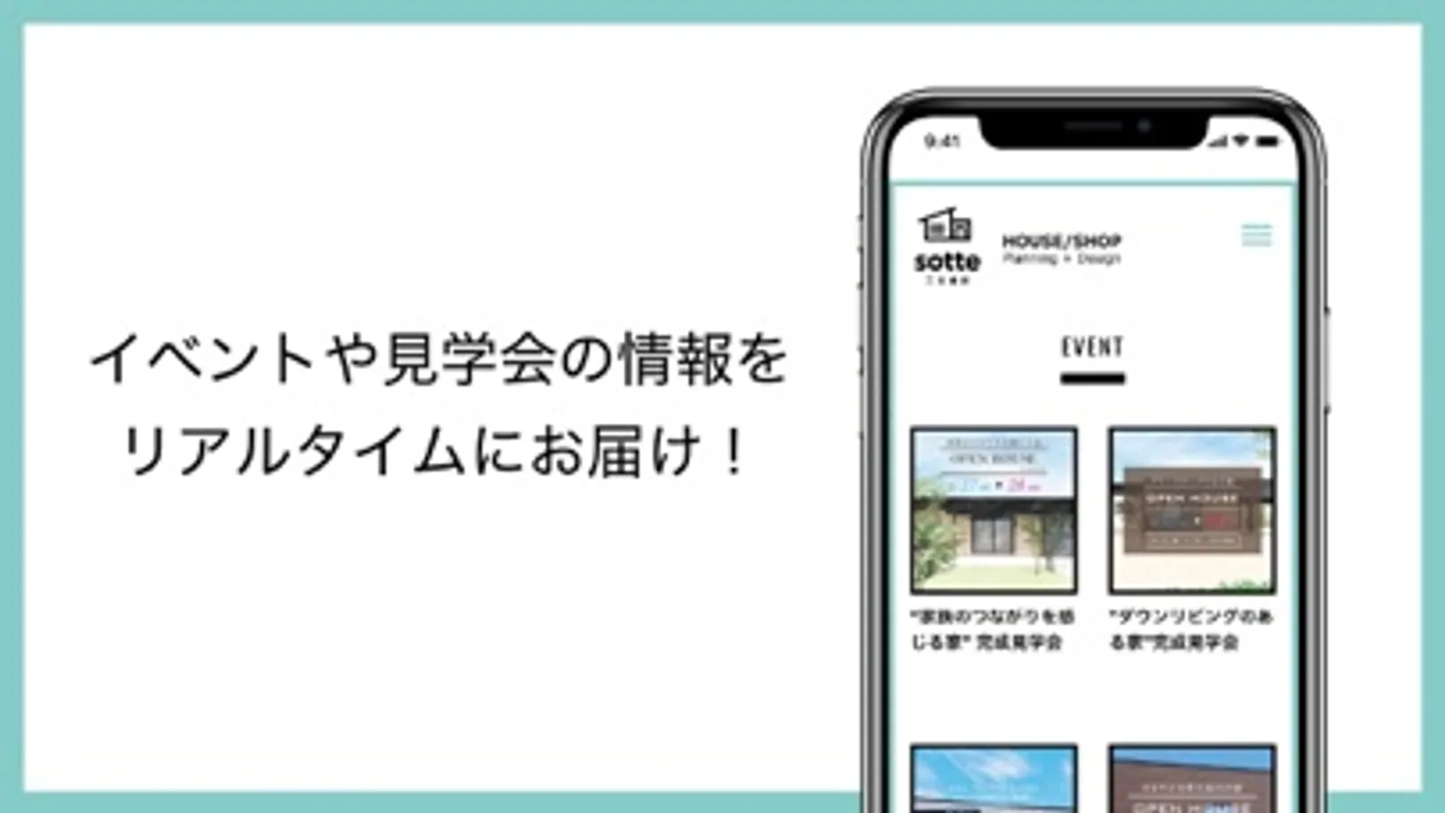 このアプリは、そんな私たち「sotte」の家づくりを、これから家づくりをはじめるお客様によりわかりやすく伝えることができるようにと開発しました。
