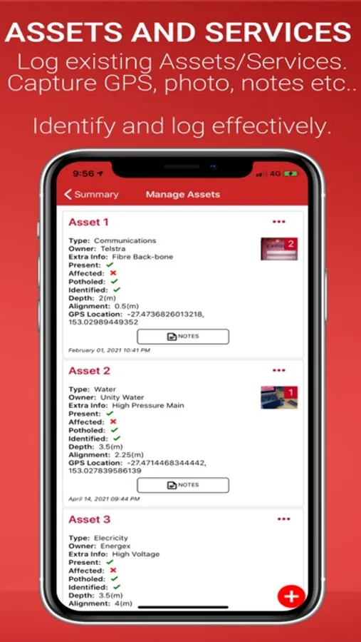 - Identify and log existing Utilities, enter notes for important info or events, capture photos, and record GPS locations.