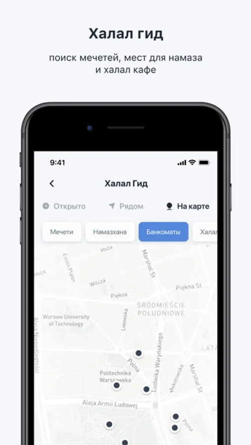 Кроме того, в приложении собраны все необходимые сервисы для ежедневной практики исламского образа жизни: время намаза, кибла, поиск халал заведений, поиск мечетей и комнат для молитв, расчет закята, обучающий материал и новости об Исламе.