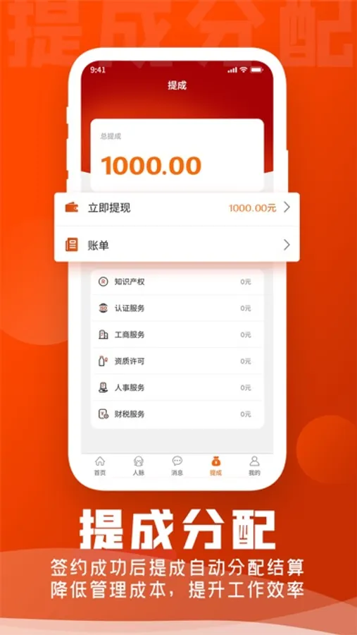 * 自动化签约成功后的提成分配,减少财务人力统计工作,提高工作效率。