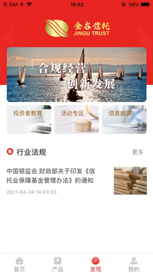 中国金谷信托APP是由中国金谷国际信托有限责任公司提供的财富管理业务移动平台的线上展示及服务的一站式交易平台,足不出户完成“预约-在线双录-电子签约-资产查询”等自助金融服务。