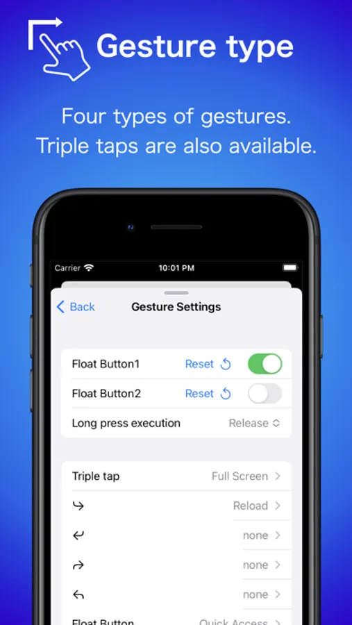 Each function can be assigned to a tap and a long press.