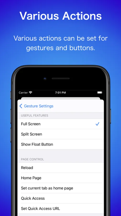 Various actions such as screen split, full screen, reload, etc. can be set.