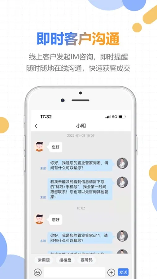 3.IM聊天:支持经纪人与客户在线即时沟通,快速搞定客户。